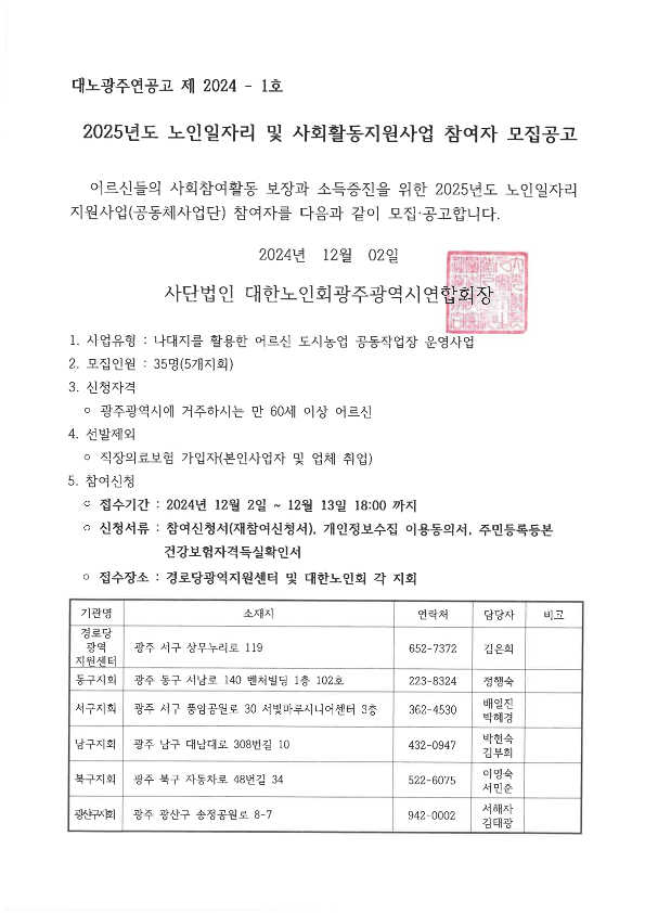 - 이전글2025년도 노인일자리 및 사회활동지원사업 참여자 모집공고 24.12.03
