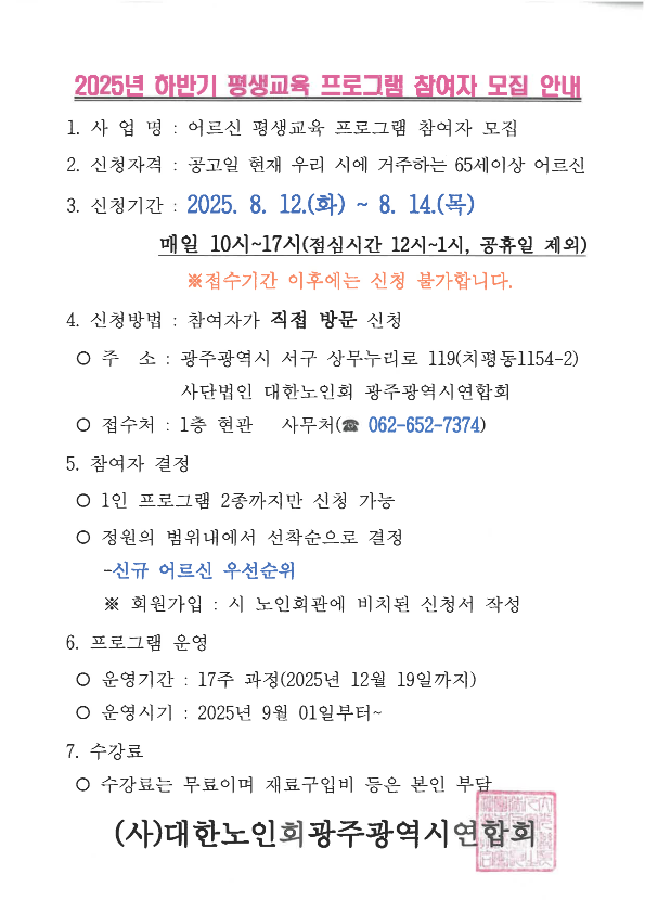 2025년 하반기 평생 프로그램 참여자 모집 안내